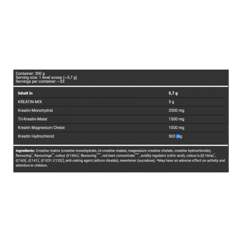• Each serving contains as much as 5 g of high-grade creatine blend