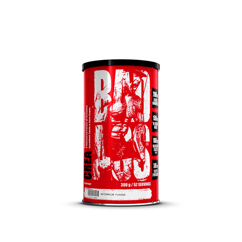 BAD ASS® CREA. Food supplement. With sweeteners. Advanced creatine formula with four different forms of creatine. Designed for adults performing high intensity exercise. Creatine increases physical performance in successive bursts of short-term, high intensity exercise. Beneficial effect is obtained with a daily intake of 3 g of creatine.