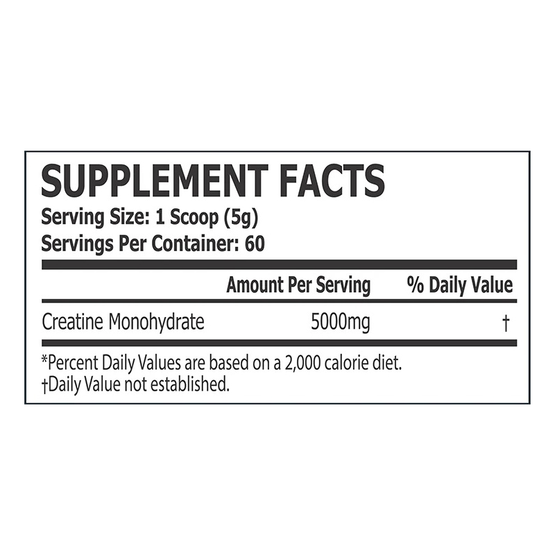 100% pure, flavorless, micronized creatine with no fillers or additives. Creatine is a naturally occurring molecule in the body that plays a key role in explosive energy metabolism. It helps to drive periods of short burst power output; like the first few reps in a set, or the explosive drive from the starting blocks.