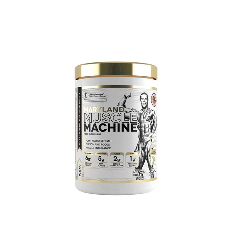 LEVRONE GOLD MARYLAND MUSCLE MACHINE. Food Supplement. With sweeteners. Contains caffeine (200 mg / serving size 8,75 g), not recommended for children or pregnant woman. Pre-workout product recommended for physically active people especially those who engage in high intensity strength training session.
